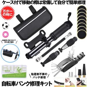 自転車 パンク修理キット 自転車用工具セット 携帯式 ミニポンプ マルチツール 収納バッグ メンテナンス